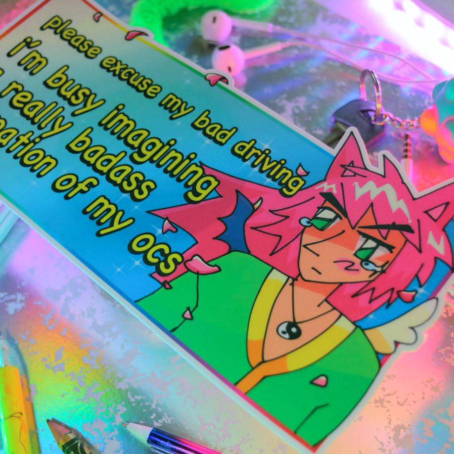 8.75 x 4.6 inches. Made with 5-year UV resistant vinyl/matte laminate. For better adhesion on a vehicle, it is recommended that you clean the area of any debris before applying the bumper sticker. Original design by MITTENMEAT 2026.