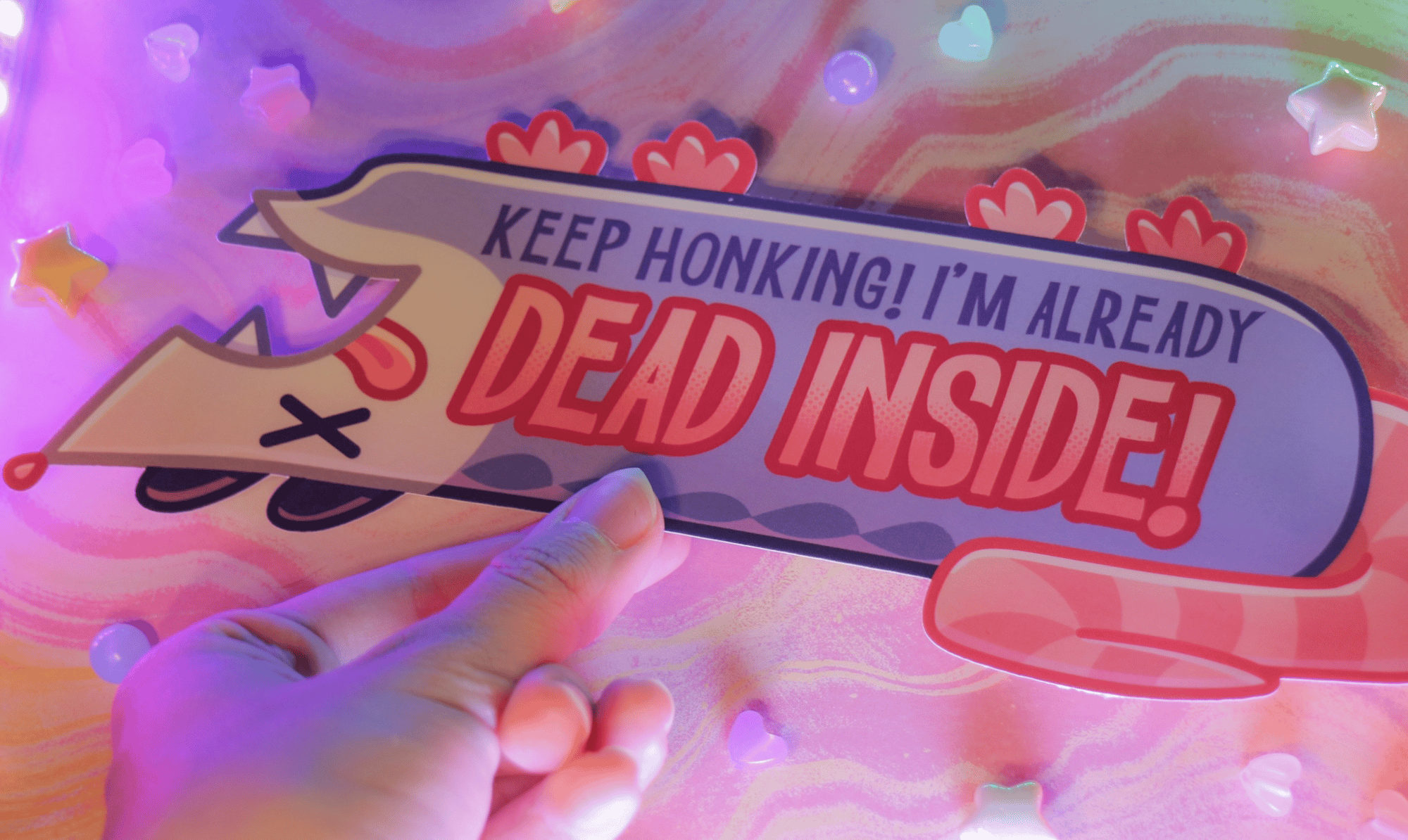 9.75" x 3" matte vinyl bumper sticker. 5 year UV proof lamination. Original illustration © MITTENMEAT 2025.